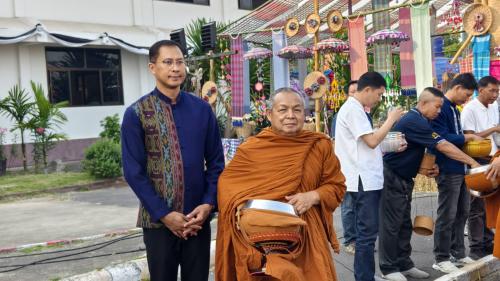 วันพุธที่ 25 มีนาคม 2568 เวลา 07.30 น. นายวีระเชษฐ์ อรุณอิสรา นายอำเภอนิคมคำสร้อย พร้อมด้วย หัวหน้าส่วนราชการ หัวหน้าหน่วยงานรัฐวิสาหกิจ ผู้บริหารสถานศึกษา นายกเทศมนตรีตำบล นายกองค์การบริหารส่วนตำบล กำนัน/ผู้ใหญ่บ้านทุกหมู่บ้าน/ตำบล ประชาชนในพื้นที่อำเภอนิคมคำสร้อย พร้อมกันทำบุญตักบาตร ณ ลานหน้าที่ว่าการอำเภอนิคมคำสร้อย จังหวัดมุกดาหาร