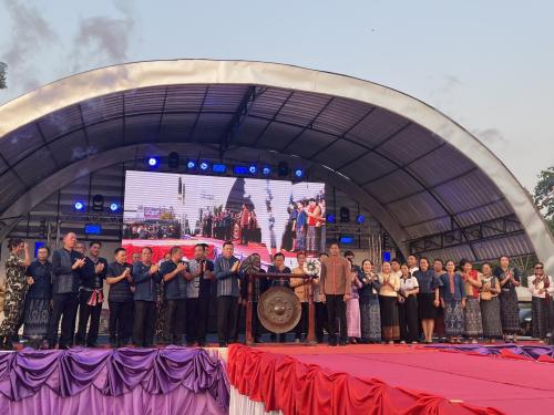 ในการนี้ นางกาญจนา รัตนเมกุล พัฒนาการจังหวัดมุกดาหาร พร้อมด้วย ผู้อำนวยการกลุ่มงานประสานและสนับสนุนการบริหารงานพัฒนาชุมชน พัฒนาการอำเภอนิคมคำสร้อย และเจ้าหน้าที่พัฒนาชุมชนอำเภอนิคมคำสร้อย เข้าร่วมพิธีเปิดงานส่งเสริมวัฒนธรรมประเพณีท้องถิ่นและการท่องเที่ยวชุมชนอำเภอนิคมคำสร้อย ประจำปี 2569 ภายใต้ชื่องาน “โฮมใจ ไทนิคมฯ”